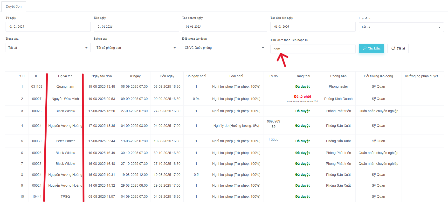 Tài khoản giám đốc không lọc được, pgđ và tp lọc được