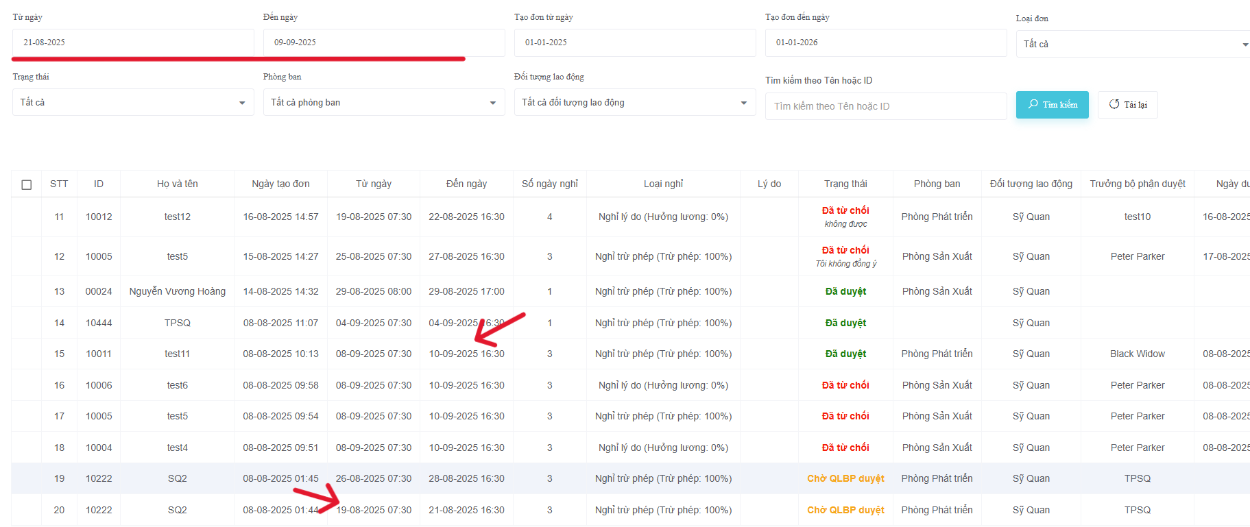 Lọc đơn từ ngày đến ngày sai