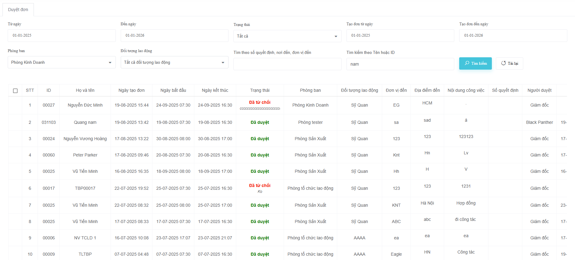 Login bằng tài khoản gđ và pgđ đều lọc sai