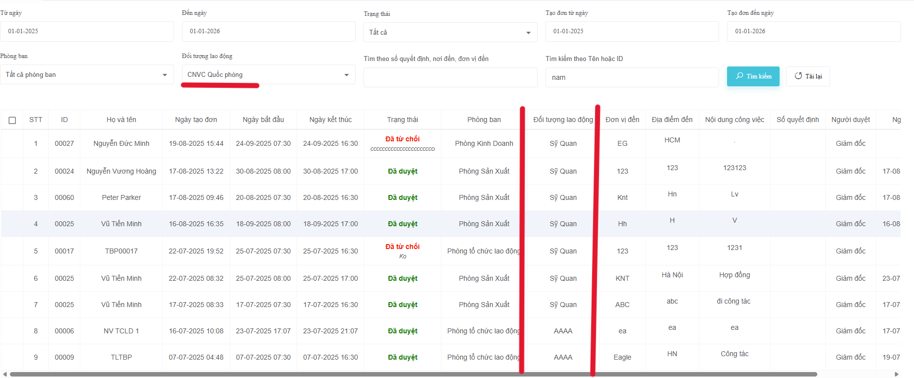 Login tài khoản gđ lọc theo đối tượng lao động sai(tp và pgđ lọc đúng)